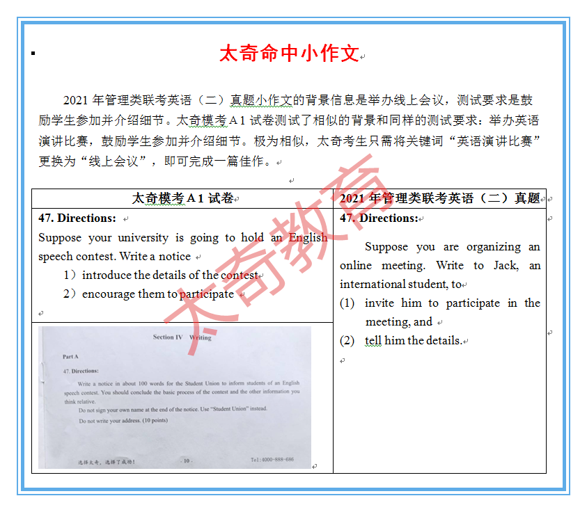 導(dǎo)讀:喜賀太奇教育英語(yǔ)教研組押中英語(yǔ)全部作文附題目押中來(lái)源