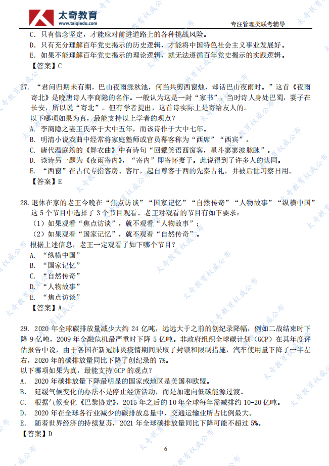 feng: 太奇的邏輯我感觸最深,聯(lián)考的真題跟??嫉目碱}有很多都是一樣的!考上清華真得很感激楊老師。